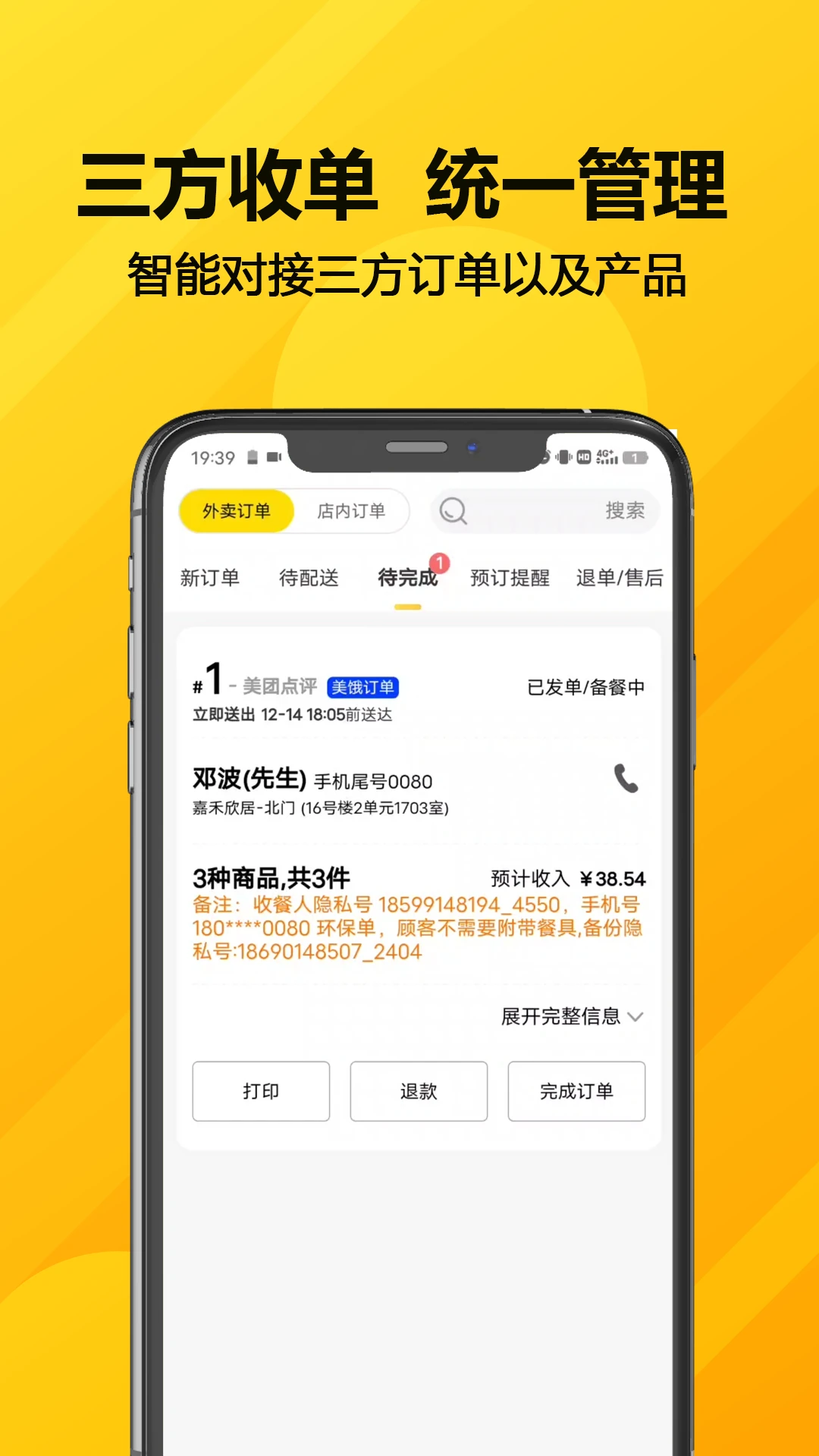 聚合外卖平台:对接主流外卖平台接口,实现多平台订单集中管理。