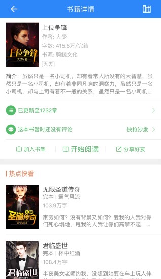 [书架收藏]私人专属书架,看书追文更明了。支持多设备同步,随时随地继续阅读进度。