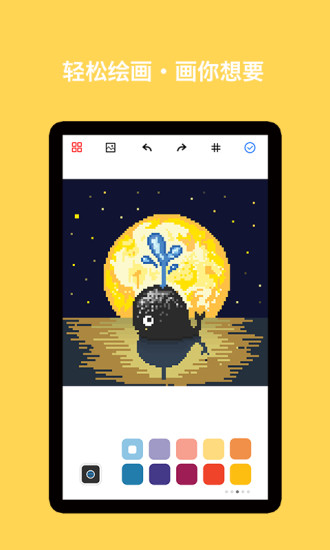 像素绘画将传统绘画与现代科技完美结合,为你带来前所未有的创作体验。在这里,每个像素点都是你表达创意的窗口,简单易上手的操作方式让每个人都能轻松创作出令人惊艳的像素艺术作品。无论是复古游戏风格、现代抽象艺术,还是可爱的卡通形象,都能通过这款应用完美呈现。