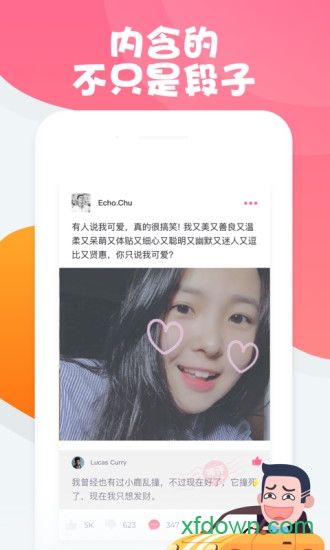 [内容搞笑]:搞笑段子、搞笑图片,幽默视频、恶搞等每天海量更新,保证让你笑到停不下来。从经典老梗到网络新梗,应有尽有,满足不同段友的笑点需求。