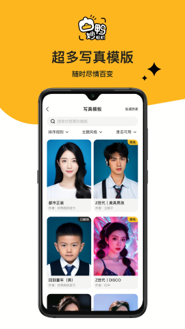 妙鸭相机目前支持微信小程序使用,操作流程非常简单。首先在微信搜索框中输入"妙鸭相机",找到对应的小程序后,上传20张不同角度的个人照片,系统就会自动为您生成各种风格的精美照片。