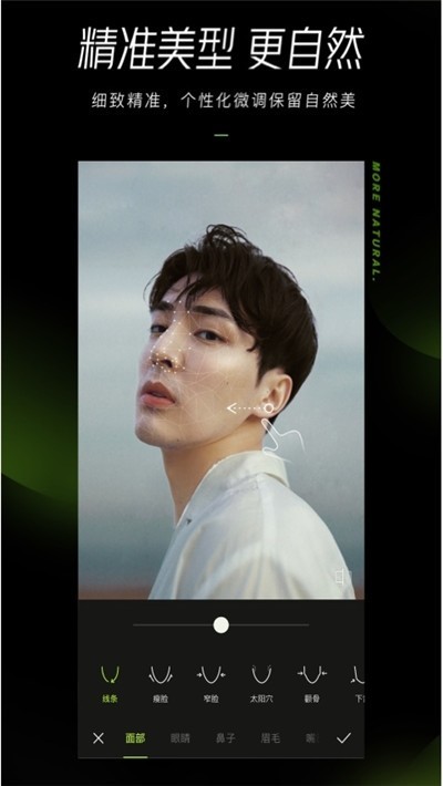 【精准美型、真实自然】支持局部微调和整体优化相结合,在美化五官的同时保持个人特色,避免千篇一律的网红脸效果。