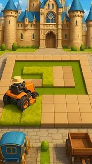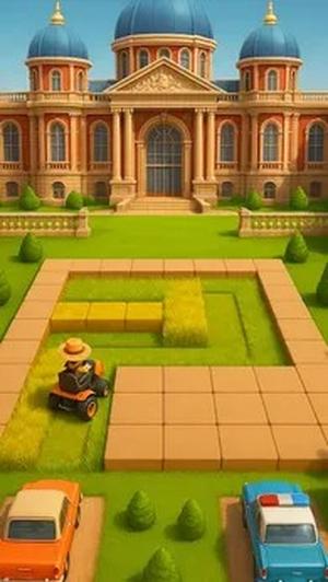 游戏引入了独特的颜色匹配机制,玩家需要根据割草机的颜色选择对应的草坪区域进行修剪,只有颜色匹配才能成功割草,这种设计类似于经典的推箱子游戏机制,误操作可能会导致无法继续推进。割草机的行驶路线不能重复交叉,也不能越界,玩家需要在脑中预判完整的行进路径,部分关卡还设有步数限制,这些设计极大地考验玩家的逻辑思维和空间规划能力。随着游戏进程,后期关卡会加入更多障碍物,如树桩、喷水器等,玩家必须灵活调整行进方向,有时还需要巧妙利用障碍物阻挡路线来完成特殊区域的修剪任务。通过不断通关,玩家可以解锁更多类型的割草机和全新场景,同时拼图内容也会越来越丰富,游戏难度从简单到复杂循序渐进,保证了游戏的长期可玩性和挑战性。