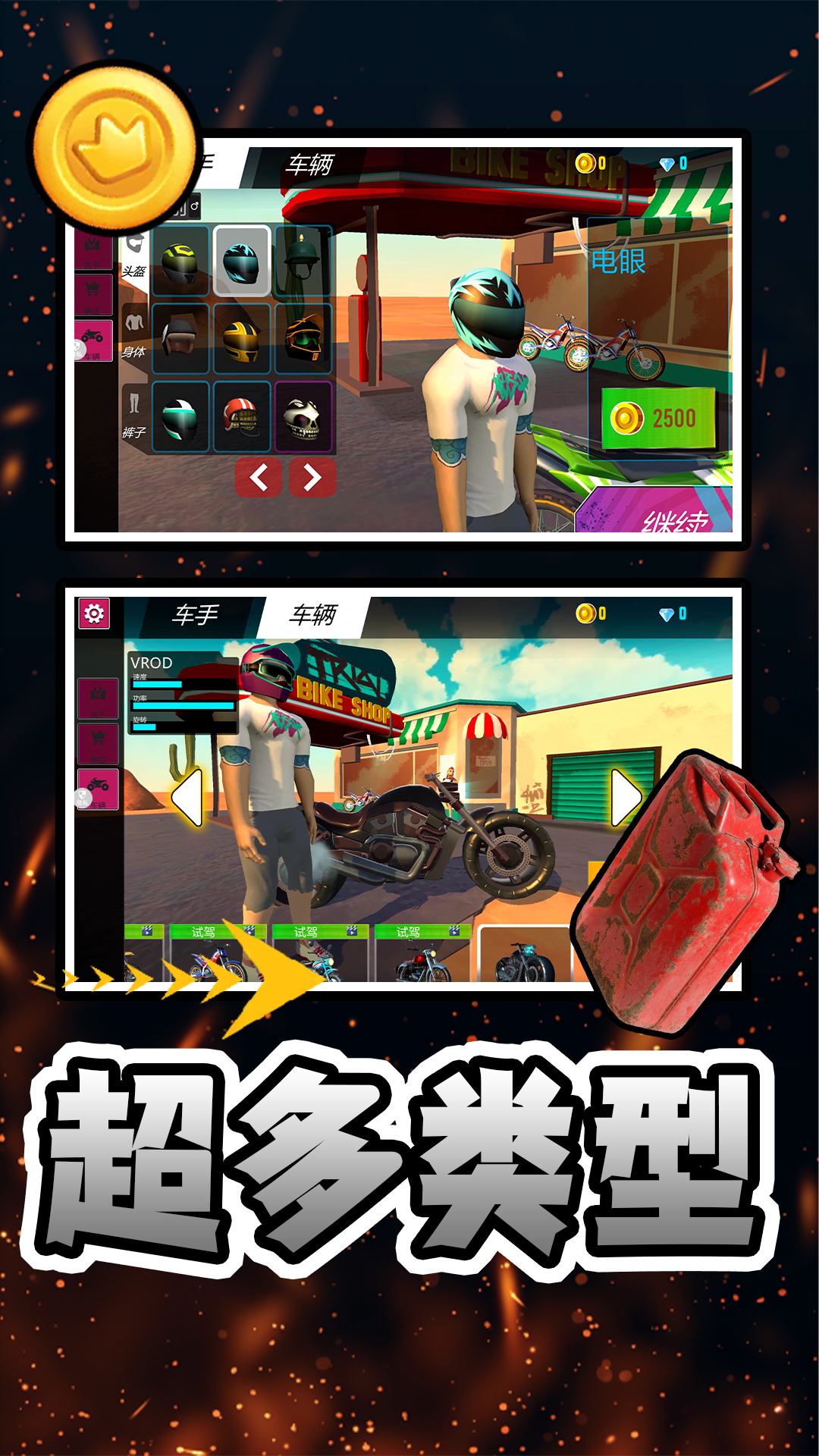神力超跑2是一款令人热血沸腾的摩托竞速游戏,玩家将驾驶造型炫酷的超跑摩托在赛道上尽情狂飙,体验肾上腺素飙升的极速冲刺快感。游戏精心设计了多样化的赛道场景,从繁华都市到荒凉沙漠,从蜿蜒山路到陡峭悬崖,每个场景都充满独特挑战。玩家需要灵活操控摩托,在高速行驶中精准躲避障碍物,抓住最佳时机完成惊险的断崖飞跃,感受无与伦比的极限速度。游戏采用先进的物理引擎技术,逼真的引擎轰鸣声和震动反馈让玩家仿佛置身真实赛场,享受风驰电掣般的驾驶乐趣。
