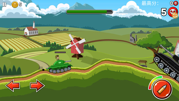 游戏界面设计简洁直观,让玩家能够快速掌握关键信息。画面左上角清晰显示当前金币数量,这是游戏中重要的资源,可用于购买新坦克和升级装备。旁边还设有游戏暂停按钮,方便玩家随时中断游戏进程。