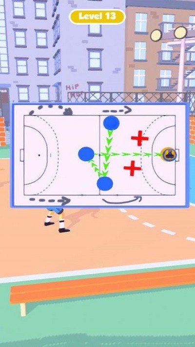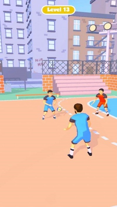 观察场地布局时,要特别注意防守球员的站位分布,结合绿色箭头的抛物线轨迹预判最佳射门角度。通过长按屏幕可以蓄力调整射门力度,在球飞行过程中还能二次微调方向,确保蓝色球能绕过障碍精准入网。掌握不同力度的击球技巧是突破高难度关卡的关键。