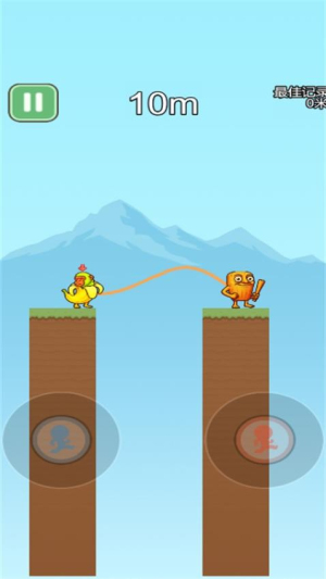 游戏采用创新的双人连体操作模式,两位玩家需要共同操控由绳索相连的卡通角色。通过精准的跳跃时机把握和距离控制,玩家可以突破层层关卡。这种独特的玩法设计让每一次成功都充满成就感。