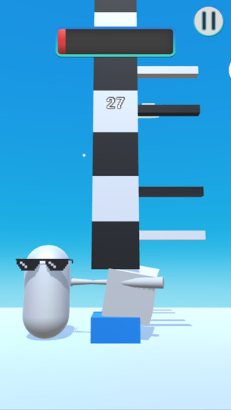 进入游戏后,首先映入眼帘的是充满节日气氛的主界面,装饰着圣诞树等元素的场景让人倍感温馨。点击中央醒目的彩色三角形开始按钮,即可开启精彩的游戏旅程。在游戏过程中,玩家需要面对不断下落的黑白条纹柱子,通过观察柱子的运动状态,及时点击屏幕两侧对应的操作按钮,确保柱子能够稳定下落。当游戏失败时,系统会显示本次得分和最佳成绩,玩家可以点击右侧的循环箭头按钮立即重新开始挑战,继续突破自己的极限。