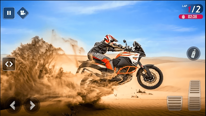 本作在画面表现上堪称精品,赛道场景细节丰富,从沙石路面到泥泞小径,每个场景都经过精心设计。摩托车模型更是细致入微,金属光泽、轮胎纹理都清晰可见。游戏完美平衡了自由驾驶的乐趣和竞速比赛的紧张感,随机出现的障碍物和不断变化的环境条件让每场比赛都充满变数。比赛胜负往往取决于关键时刻的操作,这种紧张刺激的体验会激发玩家不断挑战自我、追求更高成绩的欲望。赢得比赛后的成就感更是让人欲罢不能。