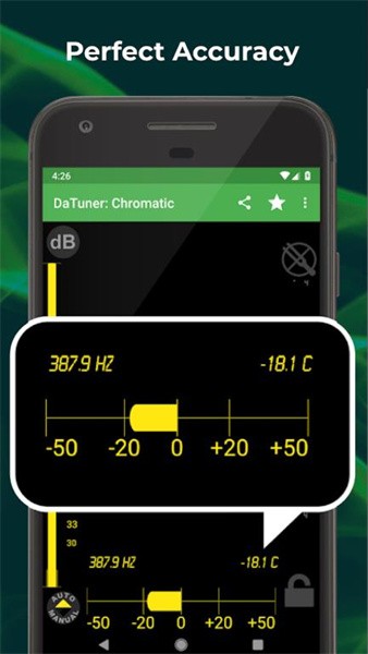 datuner调音器具备多项独特功能:软件采用智能识别技术,能够快速读取音频信息,并通过直观的刻度显示调音结果;其设计兼顾了不同水平用户的需求,无论是初学者还是专业音乐人都能轻松使用;软件兼容性极强,支持各类移动设备;当调音准确时,界面会显示醒目的绿色提示,帮助用户快速确认调音效果;此外,软件支持几乎所有常见乐器类型,确保每位用户都能获得精准的调音体验。