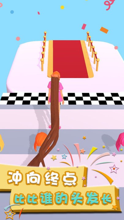 创新跑酷玩法结合头发成长系统,带给玩家前所未有的趣味体验。通过收集赛道上的发丝道具,让角色秀发不断增长,这种独特的成长机制让游戏充满成就感。精心设计的障碍物系统考验玩家反应能力。锯齿、剪刀等陷阱会随机出现,必须灵活操作才能保护辛苦积累的秀发长度,每个障碍物都有不同的应对策略。丰富多样的发型和发色可供解锁。抵达终点后可自由变换造型,满足不同审美需求,每次闯关都能获得新鲜感,收集更多发型也是游戏的重要动力。魔性又上头的游戏机制让人欲罢不能。简单易上手的操作搭配逐渐增加的难度曲线,带来持续挑战乐趣,让人忍不住一局又一局地挑战自我。