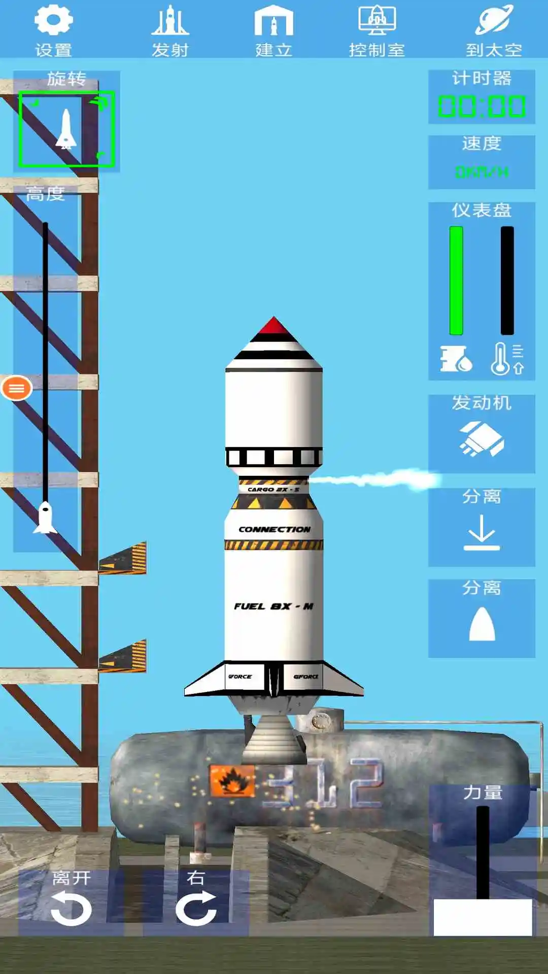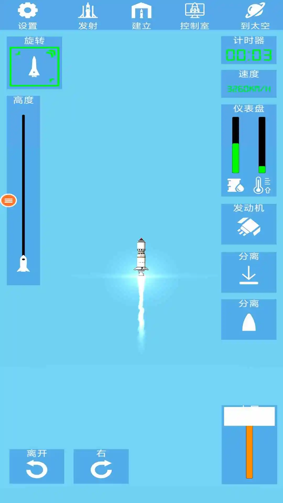 一款模拟火箭飞升的休闲游戏,一个关于建立从零件开始的火箭和发射其探索太空的游戏!游戏中玩家将制造一个火箭,搭配组合不同的配件打开自己的脑洞,保证火箭的基础的飞行能力下尽情的DIY,游戏真实模拟飞行的效果,通过不断的调试让自己的火箭飞的更高,不需要打怪,不需要挣钱,不需要解谜,给你一堆材料,你造的出火箭吗?