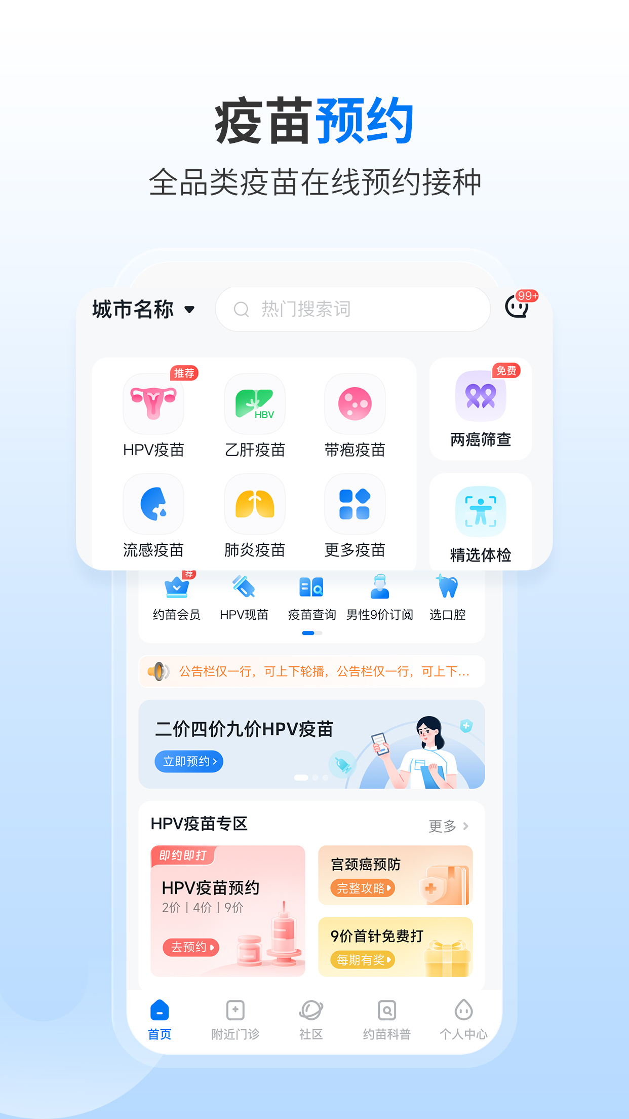 约苗是国内领先的疫苗预约及疾病预防服务平台,致力于为用户提供便捷、专业的健康管理解决方案。平台已覆盖全国32个省级行政区,与超过6700家公共卫生服务机构建立合作,累计服务4300多万用户。我们以"预防先行"为核心理念,通过数字化手段简化疫苗接种流程,同时提供权威的健康科普内容,帮助用户建立科学的疾病预防意识。无论是HPV疫苗、新冠疫苗还是儿童常规免疫,约苗都能为您提供一站式的预约服务,让健康防护触手可及。