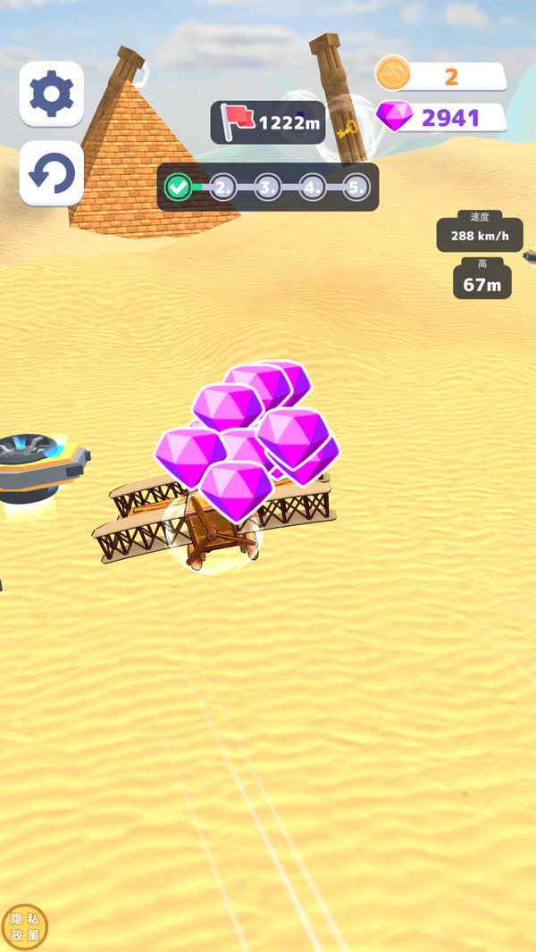 屏幕中央会实时显示飞行进度和任务目标。玩家需要根据任务要求调整飞行策略,比如竞速任务需要保持高速,而收集任务则需要精准控制。完成特定目标还能解锁隐藏奖励。