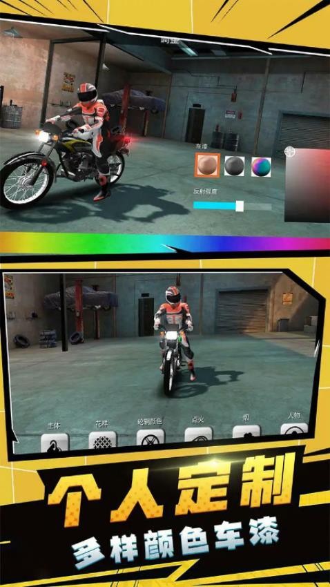 游戏提供超过50款不同风格的摩托车供玩家选择,从经典复古到未来科技,每款车型都拥有独特的操控特性。玩家可以通过比赛获得的奖励对爱车进行个性化改装,打造专属于自己的终极战车。