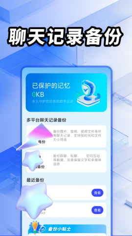 聊天记录备份防误删app是一款专为手机用户设计的智能聊天记录管理工具,能够全面保护您的社交数据安全。作为市面上功能最完善的备份解决方案之一,它不仅支持微信和QQ这两大主流社交平台的聊天记录备份,还特别设计了防误删机制,让您再也不用担心手滑删除重要对话。无论是文字消息、表情包、文件传输,还是图片、视频等多媒体内容,都能得到完整保存。其直观的操作界面和智能化的备份流程,让数据管理变得前所未有的简单便捷。