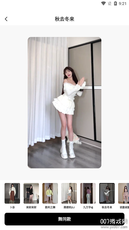 然后就可以自由的去选择不同的来进行生成了,最后点击舞同款即可,系统支持10余种舞蹈动作模板,可调节节奏快慢