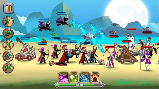 掌握战局的关键在于精准施法。游戏提供15种独特魔法和17个特色兵种,通过巧妙的搭配组合,打造属于你的无敌军团。