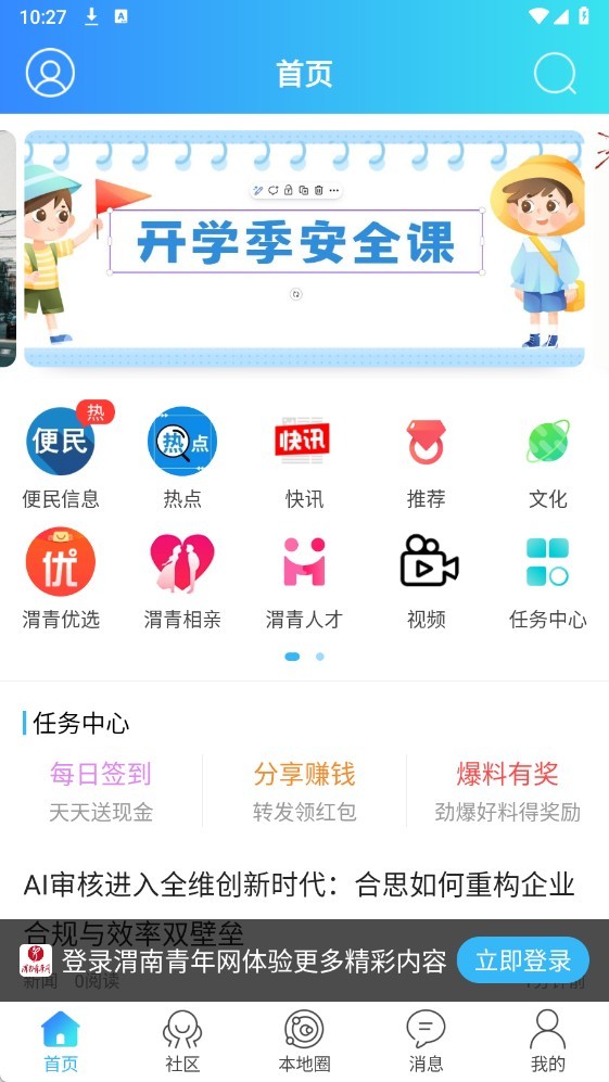 渭南青年网是一款综合性生活服务应用,涵盖信息查询、政策解读、房产交易、拼车出行等实用功能,同时提供二手交易、婚恋交友、社区互动等多元化服务。这款应用致力于打造全方位的生活服务平台,通过多样化的功能模块满足不同用户群体的需求,让日常生活更加便捷高效,从而提升用户的生活品质和幸福感。