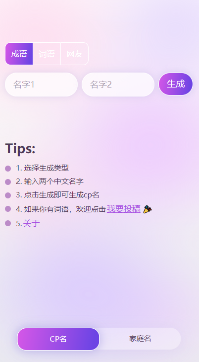 专为喜爱CP文化的朋友们设计的名字自动生成工具!
