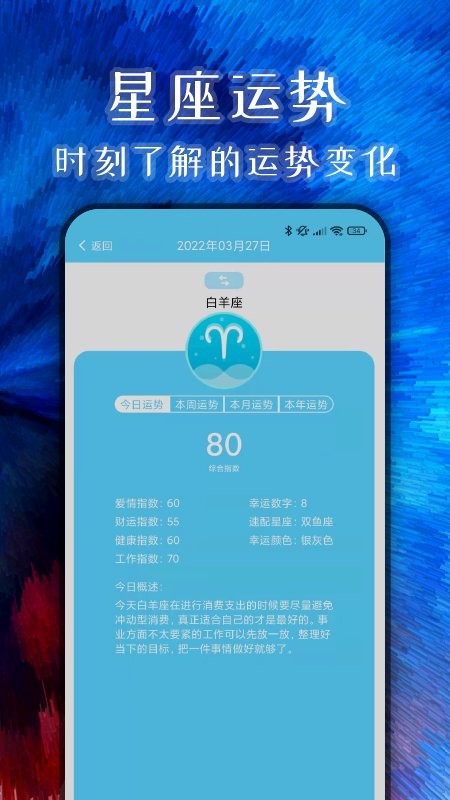 星座运势:精准预测每日、每周、每月的运势走向,涵盖十二星座全方位运势。