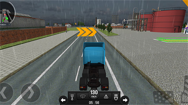 驾驶界面采用直观的左右分屏设计,右侧控制油门刹车,左侧负责转向,中央区域设有灯光、换挡等实用功能键,玩家需根据路况灵活操作。
