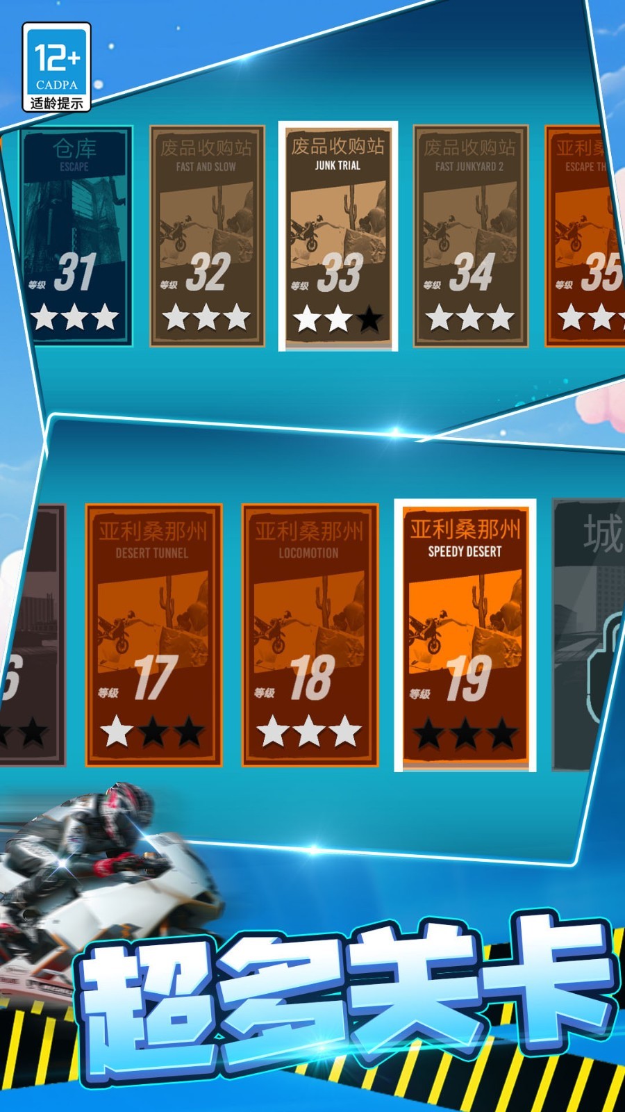 只有真正的勇士才能征服所有关卡,赢得三星评价,成为无人驾驶摩托界的传奇
