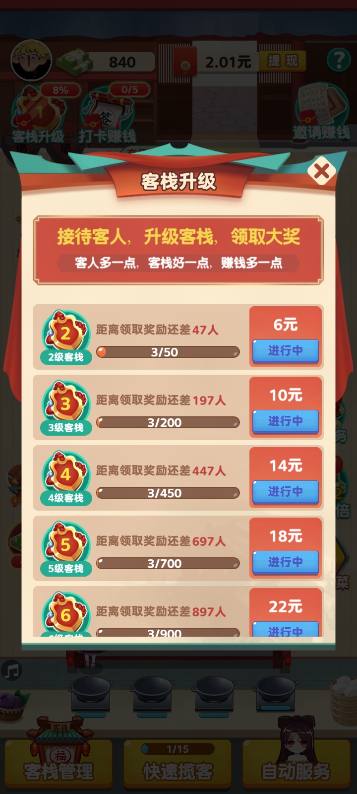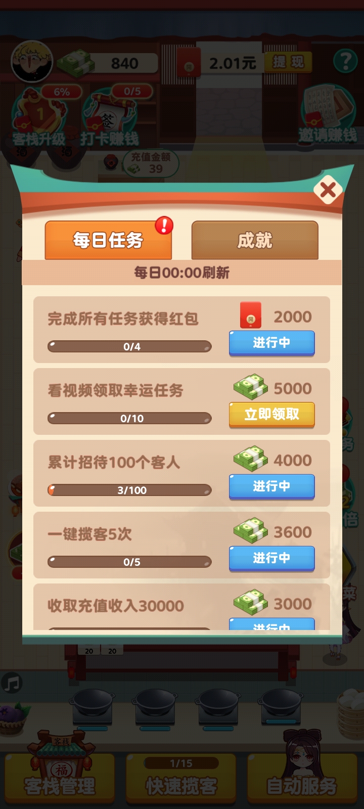 通过持续经营积累财富,达成各项成就目标,让客栈生意蒸蒸日上。