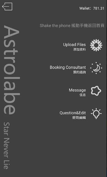 登录后即可体验各种运势预测功能。在主界面点击左下角的"占星骰子",轻触中央光球或摇晃手机等待骰子散落。随后点击三个骰子查看结果,通过星象解读来预测运势走向。