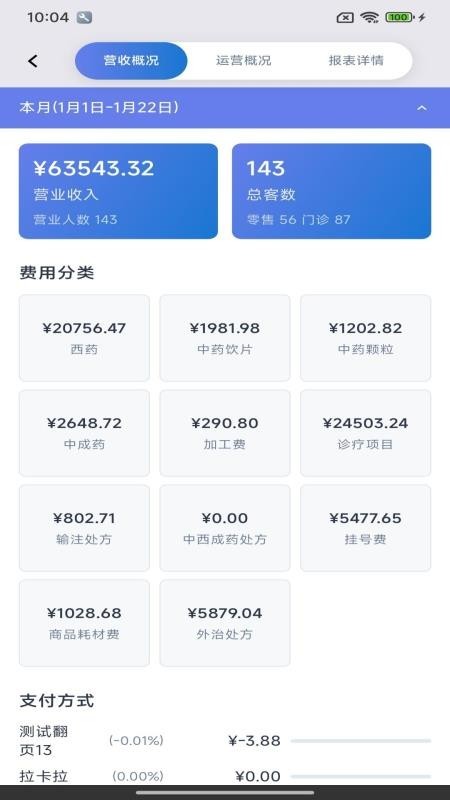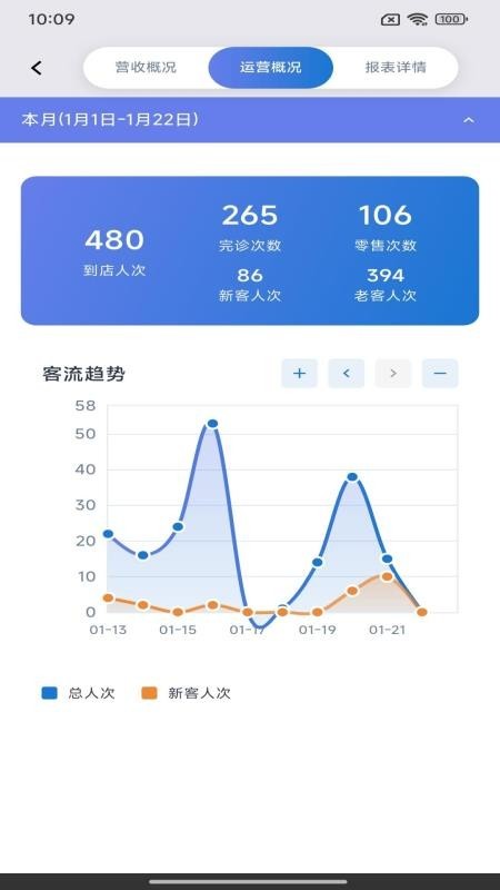 将诊所的营收数据、运营概况、报表详情进行全面分析统计,医生可查看各项报表数据。