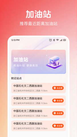 附近站点:贴心配备加油站定位功能,一键查询附近油站分布,清晰标注站点位置和距离,及时解决车主途中加油需求,让行程补能不再犯愁。