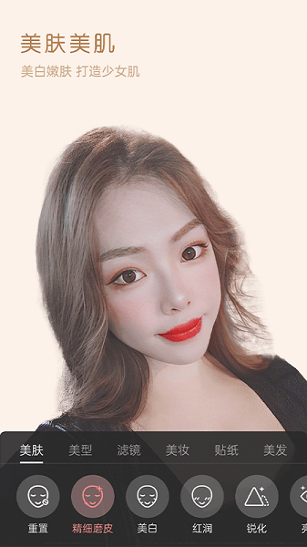 包含磨皮美白功能。智能算法黑科技使恼人的痘痘、皱纹全都消失不见,让你像仙女一般面色红润,光彩照人!支持美肤调节,凸显浑然天成的好皮肤,亲朋好友都惊叹。
