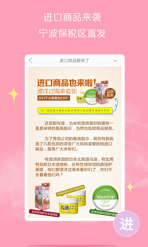 2、商城严选全球优质母婴品牌,所有商品均通过严格质检。除了常规的奶粉、纸尿裤等必需品,还提供孕期专属护肤品、舒适孕妇装等特色商品。平台与品牌方直接合作,省去中间环节,确保价格优势。新用户注册即可领取专属优惠券,每月还有会员专享折扣日。