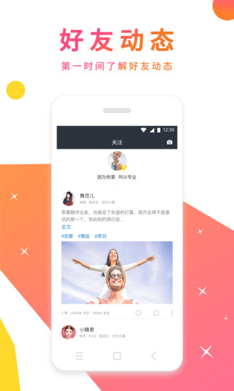 舞蹈圈是国内规模最大的泛舞蹈文化娱乐垂直社区,覆盖了从街舞到芭蕾舞等数十种舞蹈类型。平台以UGC社区为核心,提供最专业的舞蹈教学资源、最有趣的图片短视频内容、最便捷的社交功能。用户可以通过内置的美图美拍功能分享舞蹈动态,参与即时约舞和群聊,还能参加线上线下舞蹈派对和比赛活动。在这里,你可以轻松找到附近颜值最高的舞者,发现最有趣的舞蹈内容,与全球舞者建立联系,共同提升舞蹈技艺。