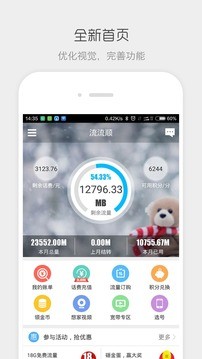 (5)统计全面性:独创的多维度流量分析功能,不仅区分本地/国内/共享流量,还能单独监控每张副卡的使用情况。支持设置家庭共享流量池,成员使用情况一目了然。话费余额提醒支持自定义阈值,余额不足时自动跳转快捷充值页面。