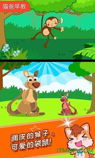 猴子:这些聪明灵巧的动物喜欢在树枝间荡来荡去,它们有着灵活的手指和长长的尾巴。游戏中设置了给猴子喂香蕉的互动环节,让孩子们了解猴子的饮食习惯。
