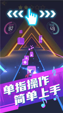 2.海量的乐曲库持续更新,包含流行、电子、摇滚等多种风格音乐,精心编排的节奏谱面让玩家完全沉浸在音乐的世界中;