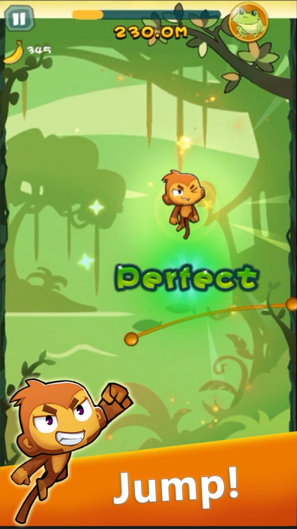 游戏采用直观的触控操作,玩家只需滑动手指就能制造弹性绳索,利用弹力让猴子跳得更高更远;