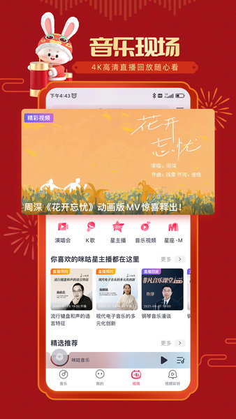 咪咕音乐致力于为用户提供最优质的音乐服务,拥有超过300万首正版音乐曲库,涵盖华语流行、欧美金曲、日韩音乐等多种风格。平台定期举办线上线下歌友会活动,让您与偶像近距离接触。我们第一时间发布周杰伦等大牌歌手的最新单曲,并推出"双DAN嘉年华"等大型抽奖活动,奖品丰厚。咪咕音乐不仅是一个音乐播放平台,更是连接音乐与生活的桥梁,让好音乐时刻陪伴在您身边。