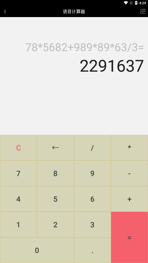 4、通过语音输入功能,只需说出计算式,系统会自动识别并显示结果