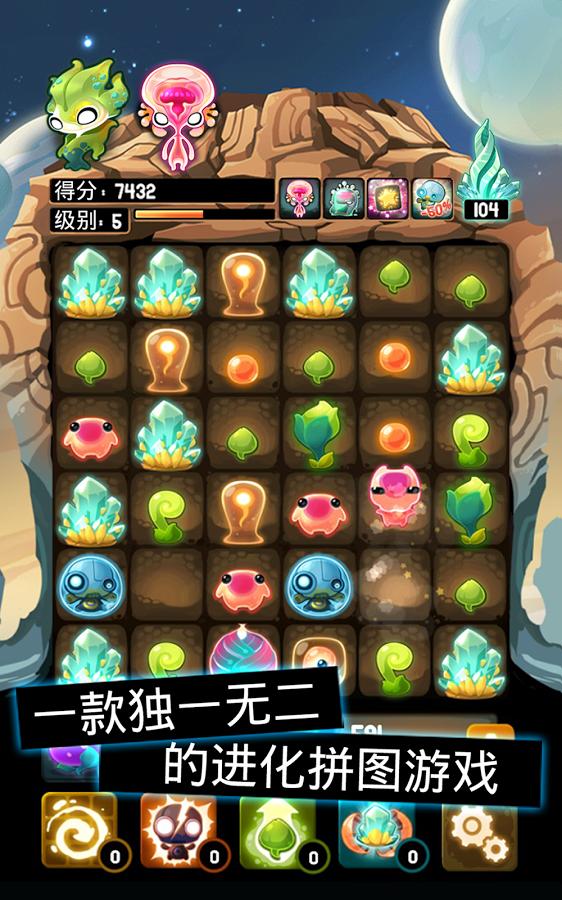 - 通过完美匹配消除,收集珍贵资源,培育和发展全新的外星人品种