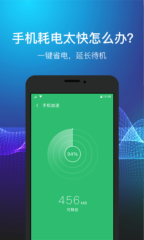 技术领先:采用与多家手机厂商联合研发的第四代电源管理算法,在相同硬件条件下比系统自带省电模式多节省15%电量。