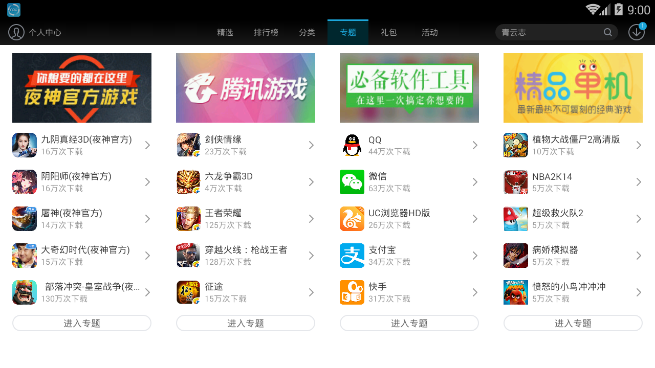 夜神应用中心HD是专为安卓平板用户设计的应用与游戏资源平台,集成了夜神官方游戏、腾讯系热门手游、精品单机游戏及实用工具软件。该平台通过智能推荐系统为用户精准匹配内容,支持横屏适配优化,让大屏设备获得更沉浸式的使用体验。其创新的多端协同功能打破设备壁垒,用户可在平板、手机、电脑间无缝切换使用场景,配合云端同步技术实现数据实时互通。