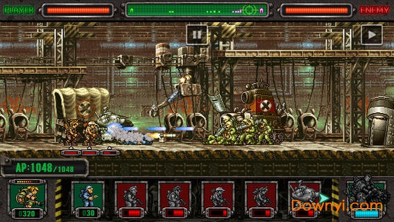 游戏采用创新的横版卷轴式塔防布局,玩家需要合理分配有限的行动点数来部署各类作战单位。每个兵种不仅拥有基础攻击能力,还具备独特的特殊技能,如何搭配使用这些技能是制胜关键。游戏地图设计极具层次感,玩家将在沙漠、丛林、城市等多样化场景中展开战斗。每个区域的最终关卡都设有极具挑战性的BOSS战,这些BOSS都源自原作经典设定,老玩家将感受到满满的回忆杀。此外,游戏中还设置了人质救援系统,成功解救全部人质可获得稀有奖励。随着游戏进程,玩家可以解锁更多强力武器和特殊单位,让战术选择更加多样化。
