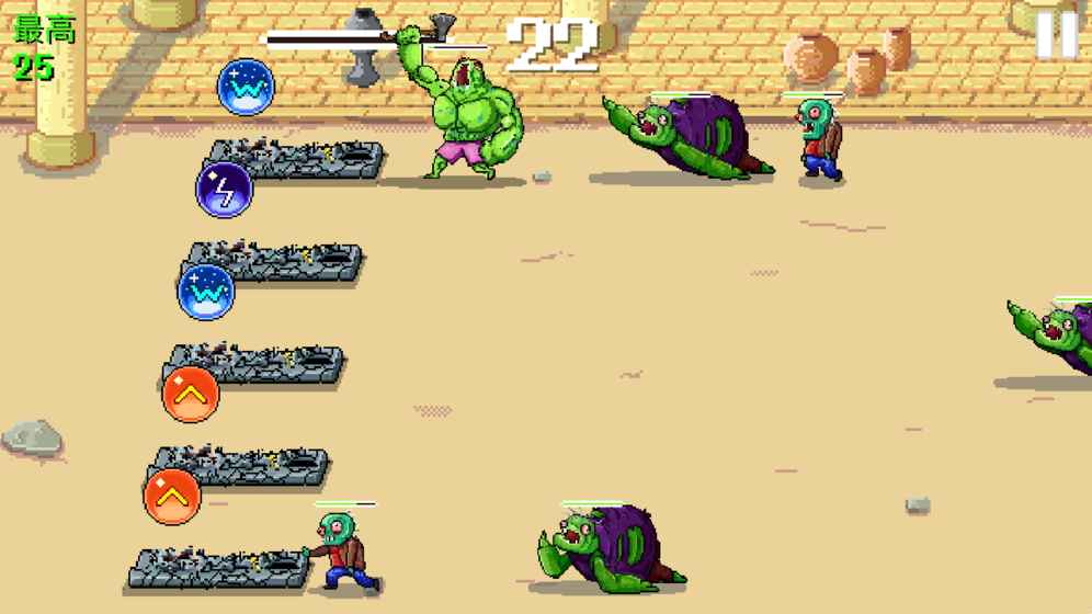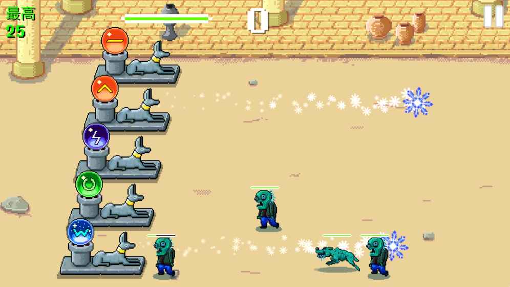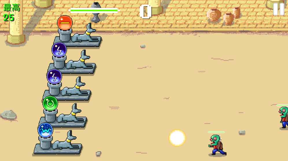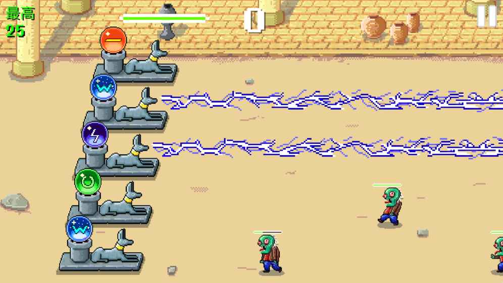 游戏拥有丰富多样的魔法系统,每种魔法都有其独特的效果和用途。红色魔法可以对单个僵尸造成高额伤害,是消灭强力敌人的利器;绿色魔法能够恢复生命值,在危急时刻为玩家提供关键的生存保障;雷电魔法可以对一条直线上的所有僵尸造成范围伤害,是应对成群敌人的最佳选择;冰霜魔法能够显著减缓僵尸的移动速度,为玩家争取更多应对时间;黄色魔法则能对单个目标造成毁灭性的打击。玩家需要根据不同的战斗场景,合理搭配使用这些魔法,才能成功抵御越来越强大的僵尸进攻。