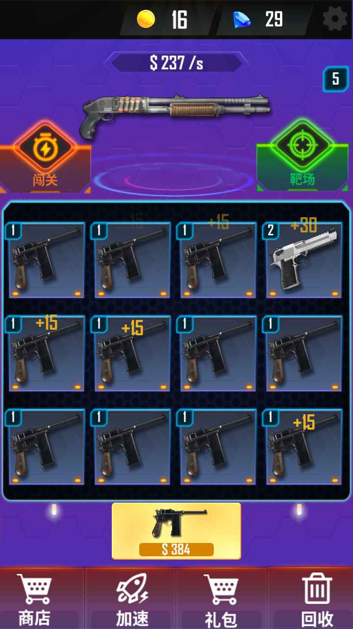 这款游戏将射击快感与合成策略完美结合,打造出独具特色的游戏体验。游戏内收录了超过50种现代枪械,从经典手枪到重型狙击步枪应有尽有。创新的武器合成系统让玩家可以自由组合不同枪械特性,比如将火焰喷射器与狙击枪结合,创造出具有燃烧效果的远程武器。每日挑战和全球排行榜功能让游戏更具竞技性,玩家可以不断突破自己的射击极限,与全球玩家一较高下。