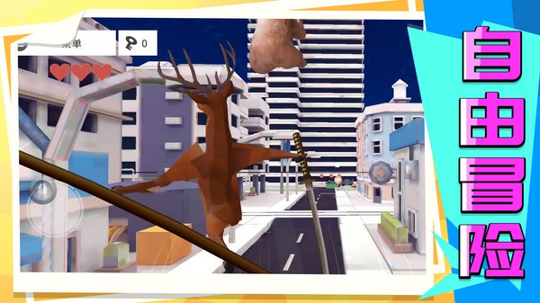 《模拟都市竞技》是一款极具创意的休闲竞技手游,玩家将操控一只特立独行的小鹿在城市中展开奇妙冒险。游戏提供了丰富的道具系统,玩家可以收集各种搞笑道具来帮助闯关。不同于传统手游的任务驱动模式,本作采用完全开放的自由玩法,你可以随心所欲地探索城市每个角落。独特的低多边形美术风格搭配明亮的色彩,营造出轻松愉悦的游戏氛围。最特别的是,游戏通过一只鹿的视角展现城市生活,让玩家体验到与众不同的"鹿生"故事。