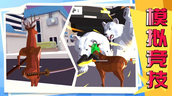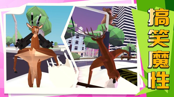 模拟都市是一款充满魔性乐趣的沙雕风格模拟类手游,在游戏中玩家将化身为一只搞怪又叛逆的鹿,开启一场疯狂的城市冒险之旅。你可以尽情破坏城市设施,与各种敌人展开激烈战斗,还能通过不断进化解锁更多强力武器。当动物警察前来抓捕你时,还能上演刺激的反抗戏码,整个过程充满无厘头的欢乐。游戏采用独特的卡通渲染风格,搭配夸张的物理效果,让每一次破坏都充满喜剧色彩,带给玩家前所未有的解压体验。