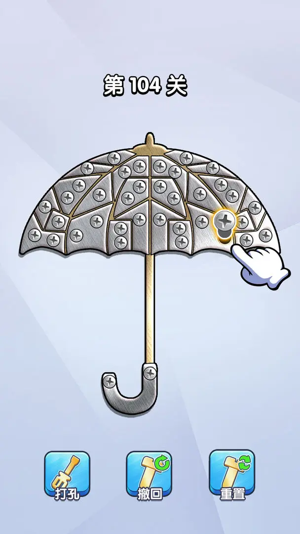 2D美术水准同小游戏,界面比较简洁干净,没什么多余的周边功能,看着挺清爽。角色造型挺可爱的,但关卡进行中不会出现,也就开头结束露个脸,没什么存在感。游戏采用明亮的色彩搭配,视觉效果舒适不刺眼。背景音乐轻松欢快,与游戏节奏完美契合,螺丝拆卸时的音效反馈清晰明确,增强了操作的真实感。