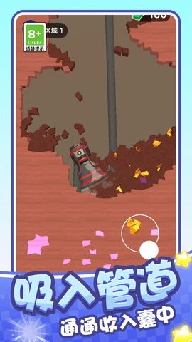 简单易上手的操作方式背后是深度的策略玩法,通过升级钻头配件可以解锁特殊技能,比如瞬间爆破大片区域的震荡波;